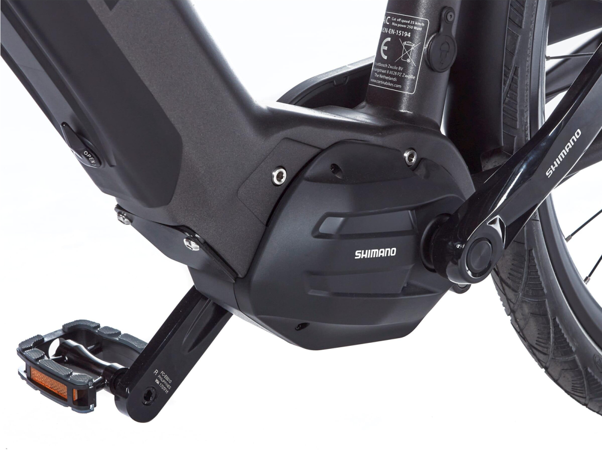 Een in het frame geïntegreerde accu van Shimano biedt in combinatie met de Shimano Steps middenmotor gegarandeerd een comfortabele rit. Doordat het zwaarte punt zo centraal in het frame ligt, lijk je bijna moeiteloos over fietspaden en drukke kruispunten te manouvreren. In tegenstelling tot de standaard E-Mozzo Pro beschik je over een iets minder sterke motor, maar deze biedt meer dan voldoende kracht om vals plat omhoog te klimmen. Met drie ondersteuningsstanden inclusief loopondersteuning en 7 versnellingen blijf je daarbij altijd een fijn beentempo houden.